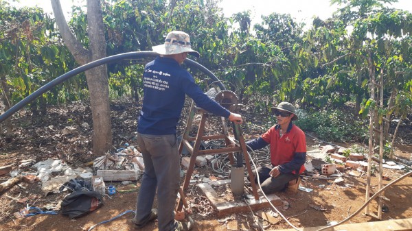 Nông dân phải dùng giếng khoan tưới nước luân phiên cho cây trồng bị hạn