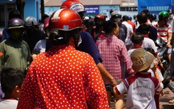 Phụ huynh Trường tiểu học Bình Quới Tây đón con về buổi trưa, do trường tạm dừng ăn bán trú