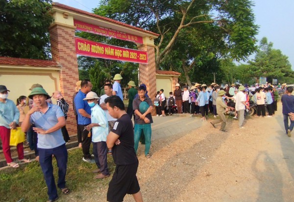Người dân đến Trường THCS Lạng Sơn để bày tỏ thái độ không đồng tình sáp nhập trường |