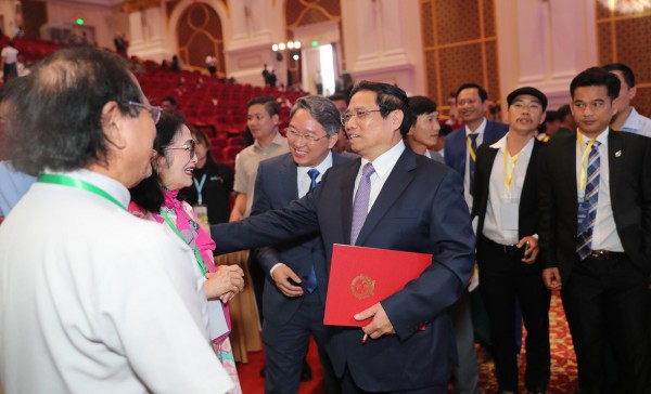 Thủ tướng Phạm Minh Chính trao đổi với các đại biểu tại hội nghị