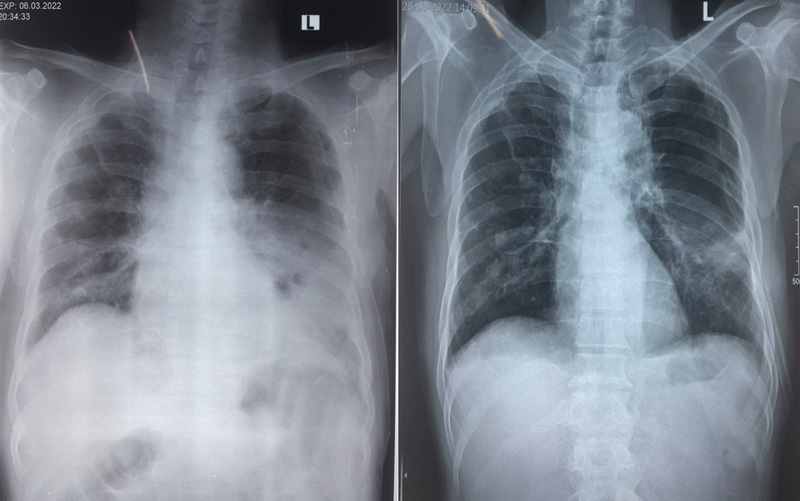 Sau 2 ngày điều trị nội khoa, bệnh nhân xuất hiện thêm tình trạng tràn khí màng phổi. Các y bác sĩ đã nhanh chóng mở màng phổi dẫn lưu khí cho người bệnh.