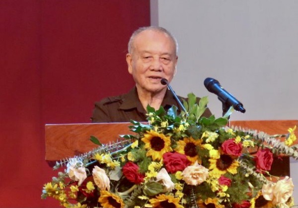 | Đại tướng Phạm Văn Trà phát biểu tại lễ ra mắt Quỹ khuyến học Phạm Văn Trà tỉnh Hậu Giang |