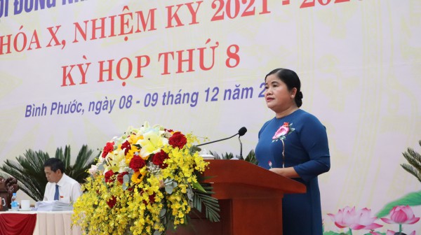 Chủ tịch UBND tỉnh Bình Phước Trần Tuệ Hiền phát biểu tại kỳ họp |