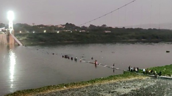 Sập cầu treo tại Ấn Độ, hàng trăm người rơi xuống sông, ít nhất 30 người chết
