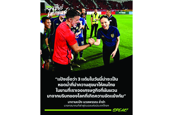 Không chỉ dừng lại ở đó, bà Madam Pang còn nhấn mạnh ý nghĩa xã hội của chiến thắng: “Tôi hy vọng 3 điểm hôm nay sẽ mang lại niềm vui cho người dân Thái Lan, đặc biệt trong bối cảnh kinh tế còn nhiều khó khăn. Đây là món quà mà đội tuyển muốn gửi đến tất cả mọi người”.