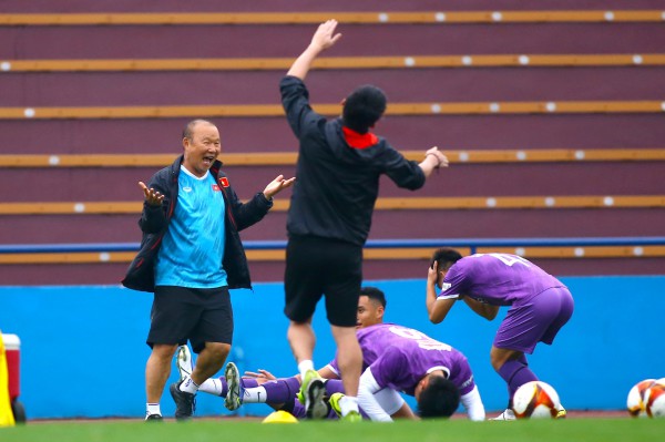 Nụ cười rạng rỡ của ông Park và các cầu thủ U.23 Việt Nam Vương Anh |