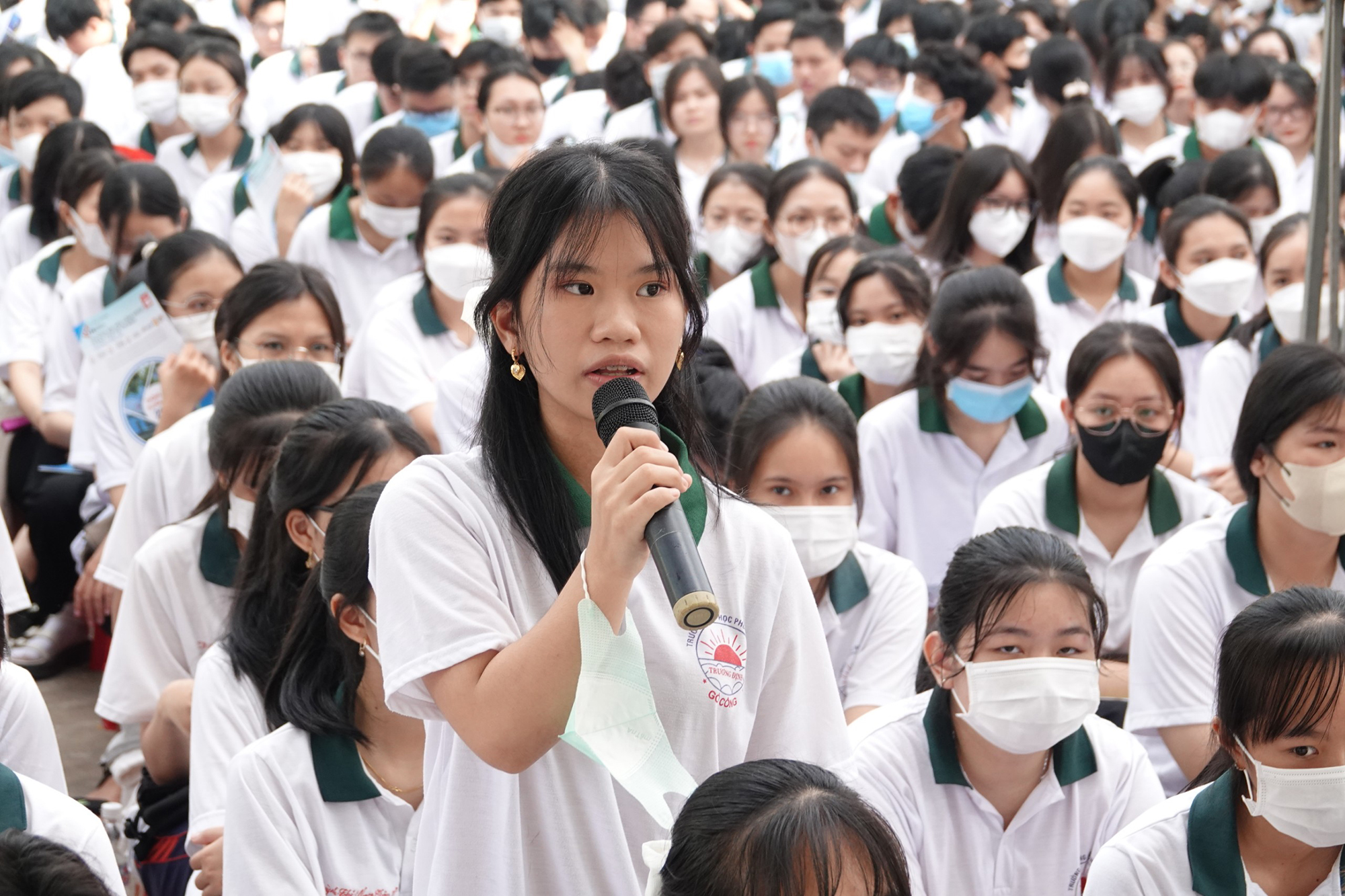 Hơn 2.000 học sinh tham gia nghiêm túc, đặt câu hỏi chất lượng trong chương trình Tư vấn mùa thi tại Trường THPT Trương Định (Tiền Giang) sáng qua