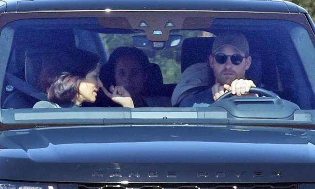 Vợ chồng Meghan Markle lái xe đến nhà Oprah.