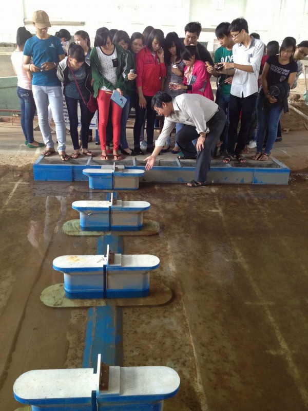 Sinh viên tham quan, thực tập mô hình công trình thủy (mô hình cống ngăn triều, mặn)