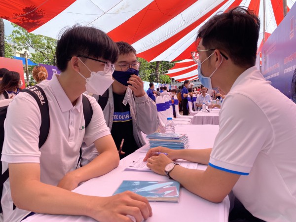 Sinh viên tìm hiểu thông tin trong ngày hội việc làm của một trường ĐH tại TP.HCM |