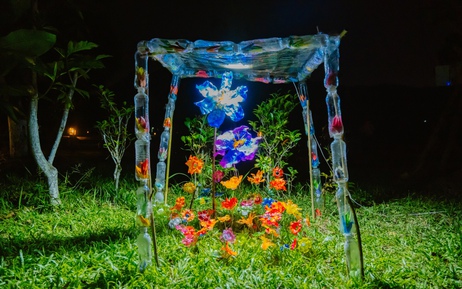 Tác phẩm “Nơi giữ mùa xuân” dùng vật liệu tái chế biến thành tác phẩm nghệ thuật mang thông điệp về môi trường và sự sống