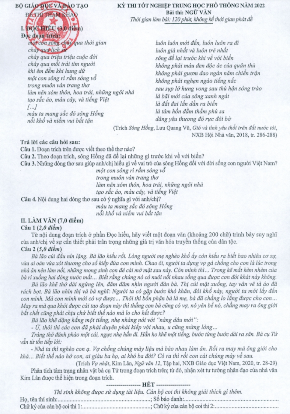 Hồng Phúc chia sẻ: “Sau khi xem xong đề tham khảo, em nghĩ thí sinh không nên chủ quan, không nên học tủ hay học vào những vấn đề chính của tác phẩm. Điều quan trọng là thí sinh nên học trọn vẹn tất cả tác phẩm, không chỉ học phân tích mà còn tập tư duy để có thể khái quát những nét giá trị được rút ra sau tư liệu được cho ở đề”.