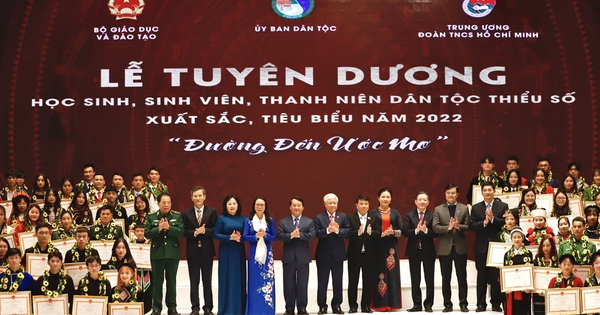 Lễ Tuyên dương học sinh, sinh viên, thanh niên dân tộc thiểu số xuất sắc, tiêu biểu năm 2022 – Ảnh: VGP/H.Giang