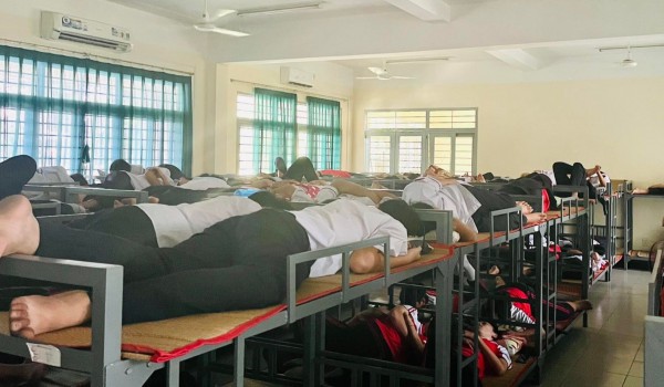 Học sinh THPT nghỉ trưa tại trường |