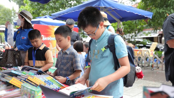 Các em thiếu nhi đọc sách tại Ngày hội giáo dục – cùng Kun tư duy sáng tạo vào ngày 19.11