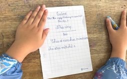 Học sinh Trường tiểu học La Hai (xã Đồng Xuân, Đắk Lắk) mượn bạn giấy để chép bài khi đi học lại