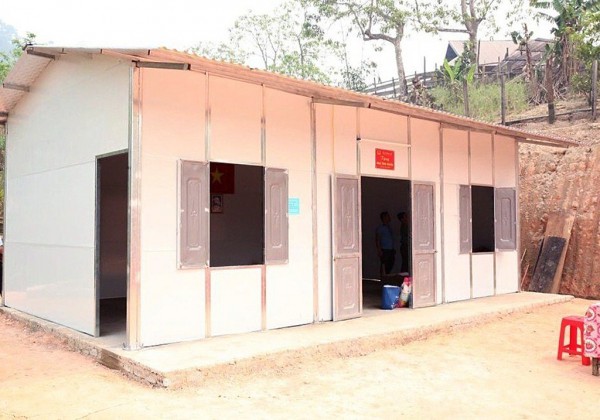 Ông Vừ Bá Chả, Bí thư Đảng ủy xã Tà Cạ, cho biết chương trình hỗ trợ xây nhà cho người nghèo đã hỗ trợ mỗi gia đình nghèo, đang phải ở nhà tạm một căn nhà lắp ghép có diện tích 46,5 m2, trị giá 50 triệu đồng. Chí phí và công xây móng nhà do xã vận động từ các nguồn khác. Căn nhà lắp ghép có chung một mẫu, rất tiện dụng, đủ để người dân làm chỗ ở an toàn.