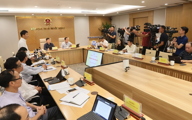 Thứ trưởng Bộ Thông tin và Truyền thông Phạm Đức Long phát biểu tại buổi họp báo thường kỳ tháng 9
