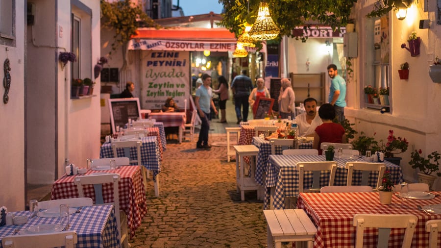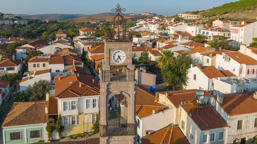 Lang thang quanh thị trấn lát đá cuội của hòn đảo, một chút dư âm còn sót lại của người Hy Lạp trước đây thực sự cuốn hút du khách. Quanh đâu đây, những ngôi nhà và quán rượu cổ bằng đá cùng với bàn ghế gỗ phục vụ hải sản tươi sống, rượu raki hoặc rượu vang hàng đêm.