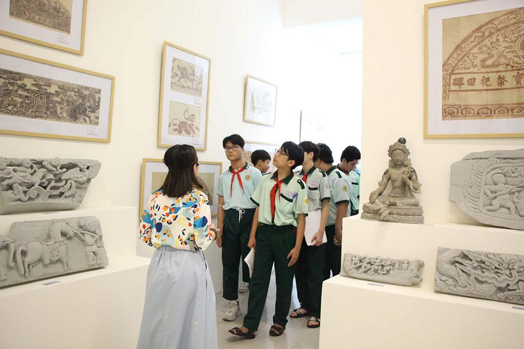 Lần đầu tiên, HS khối 8 của Trường THCS Hà Huy Tập (Q.Bình Thạnh, TP.HCM) lần lượt thực hiện tiết học mỹ thuật tại Không gian học thuật của Trường ĐH Mỹ thuật TP.HCM. Trong tiết học đó, giáo viên mỹ thuật của Trường THCS Hà Huy Tập đã trở thành trợ giảng còn giảng viên Trường ĐH Mỹ thuật trở thành “giáo viên lớp 8” đứng lớp, hướng dẫn HS tham quan không gian, giới thiệu về các loại hình tranh, điêu khắc và cơ hội nghề nghiệp…