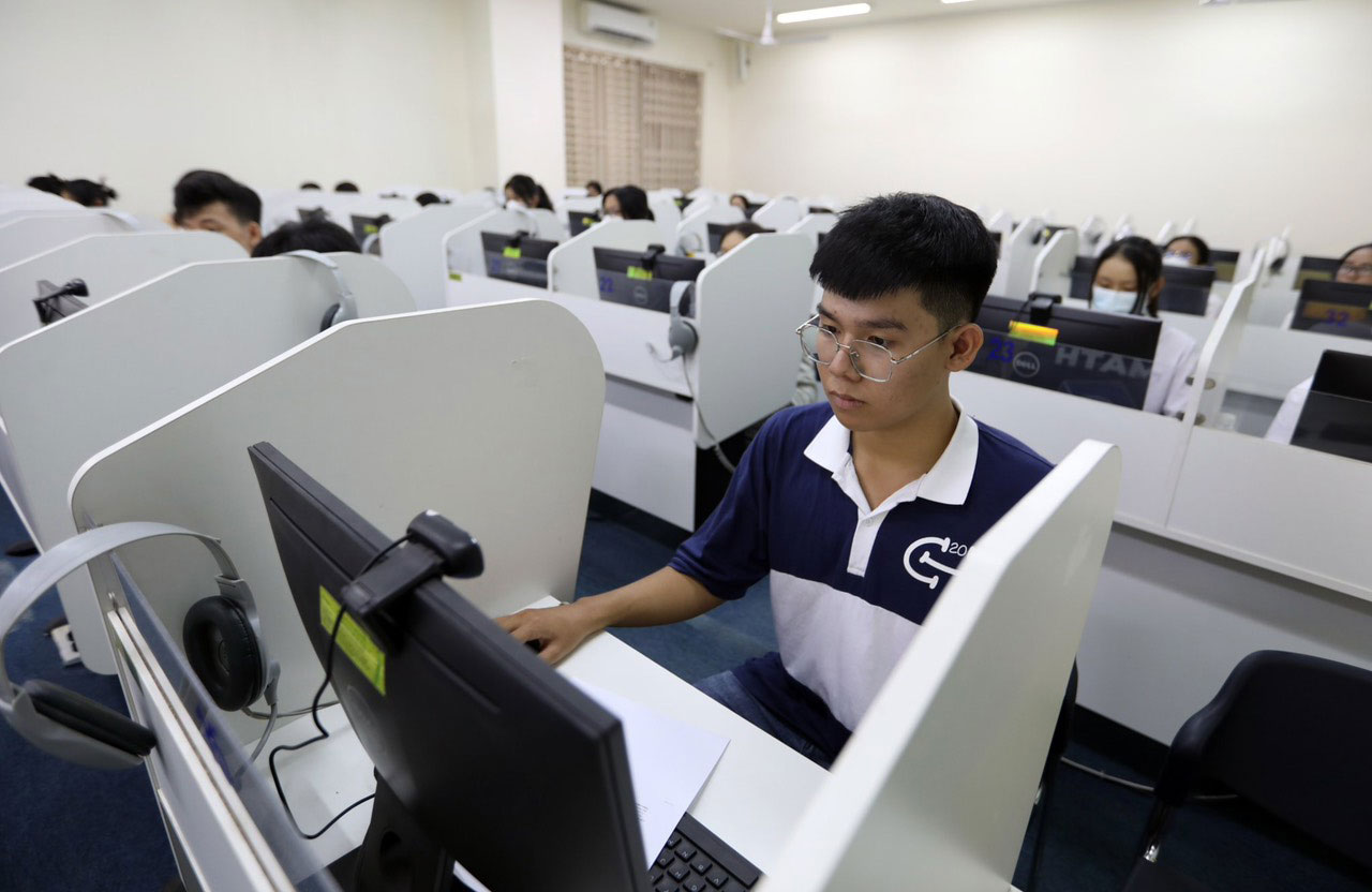 Thí sinh tham dự kỳ thi đánh giá năng lực chuyên biệt trên máy tính tại Trường ĐH Sư phạm TP.HCM năm 2023