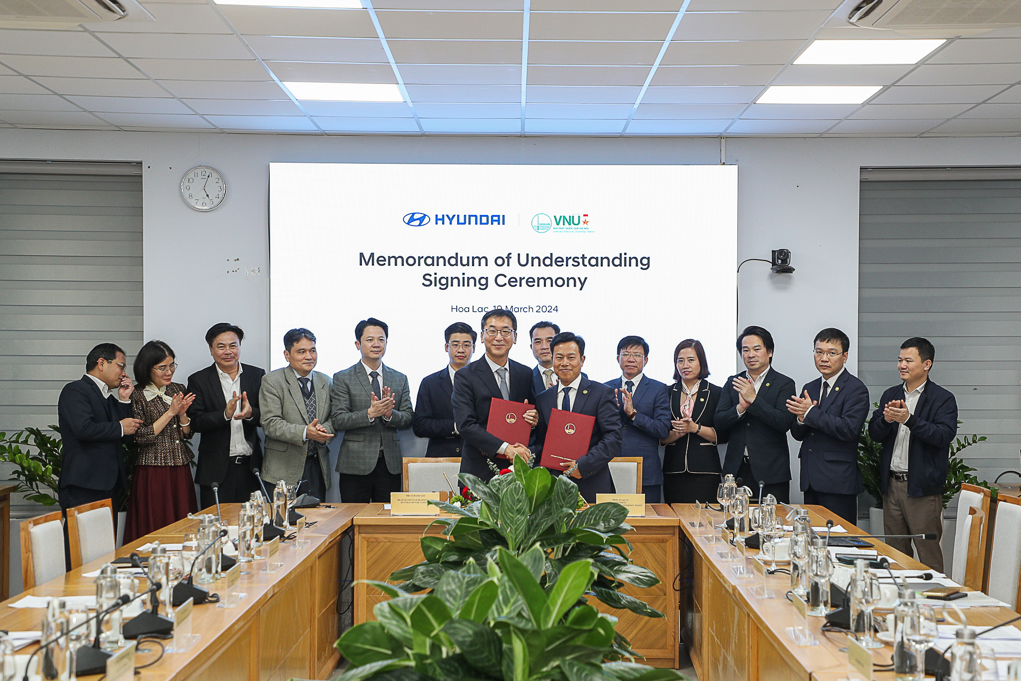 Chiều tối nay 19.3, tại Hòa Lạc, Hà Nội, ĐH Quốc gia Hà Nội và đại diện Hyundai Motor (Tập đoàn Hyundai) tại Việt Nam đã ký kết văn bản thỏa thuận hợp tác giữa hai bên.