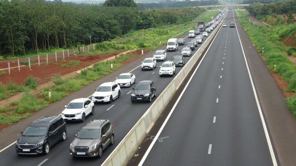 Dòng xe kéo dài trên cao tốc Phan Thiết – Dầu Giây, hướng ra Bình Thuận