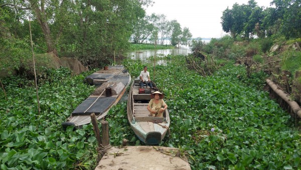 “Có những hôm, dù nước lớn nhưng vướng lục bình, rất khó chèo ghe. Vợ chồng tôi nhiều lúc cũng lo lắm, nếu ốm đau mà thủy triều xuống thì không biết làm sao tới bệnh viện cho kịp. Không biết đến khi nào thì mới có lối đi vào nhà”, ông Xã buồn bã.