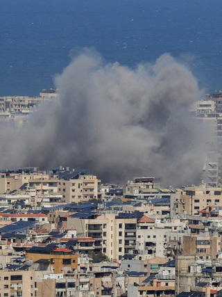 Khói bốc lên sau đợt không kích của Israel tại Beirut ngày 30.3 Ảnh: Reuters