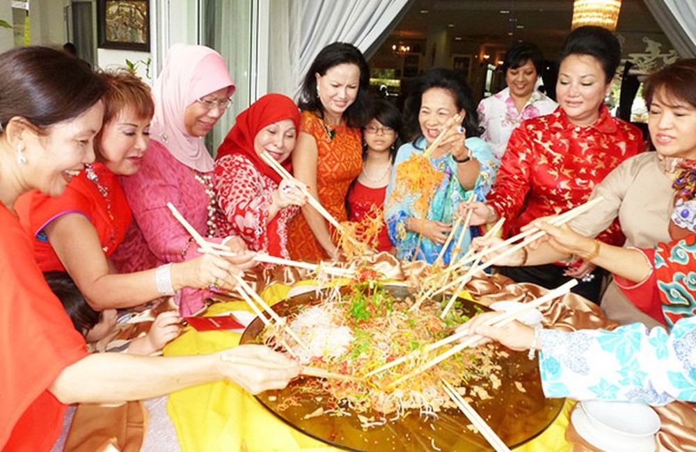 Gỏi Yusheng, món gỏi mang ý nghĩa về sự thịnh vượng được người Singapore ăn vào ngày đầu năm mới.