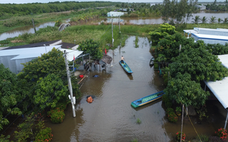 Gần nửa tháng qua, khu tái định cư Vàm Kinh Tư (xã Khánh Hưng, Cà Mau) bị ngập sâu, người dân phải dùng xuồng làm phương tiện đi lại.
