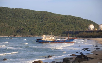 Tàu cá vỏ thép của nước ngoài mắc cạn tại vùng nước cảng Dung Quất, thuộc xã Vạn Tường (Quảng Ngãi) ẢNH: CẨM ÁI
