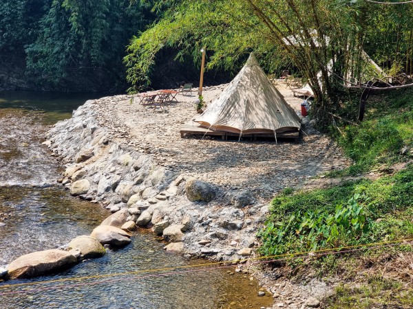 Khu du lịch dựng lều phục vụ khách cắm trại qua đêm bên dòng sông Luông Đông