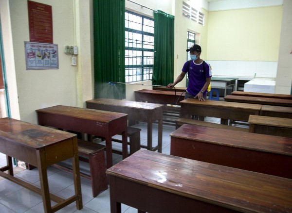 Các trường trong tỉnh Kiên Giang đã tổ chức phun khử khuẩn lớp học để đón học sinh trở lại |