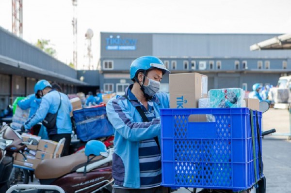Thương mại điện tử trở thành một trong những phương án lựa chọn để doanh nghiệp “sống chung” với đại dịch. Ảnh: Giao hàng trong dịch COVID-19 của Tiki