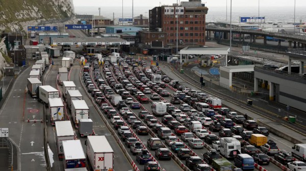 Hàng dài phương tiện tại cảng Dover ở Anh vào tháng 7. Ảnh: CNN
