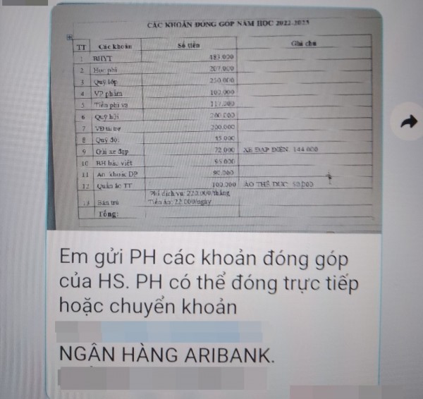 Cụ thể, Trường tiểu học Hùng Vương thu quỹ hội phụ huynh 150.000 đồng và xã hội hóa 300.000 đồng. Trường tiểu học và THCS Lê Quý Đôn thu quỹ hội phụ huynh 200.000 đồng, vận động tài trợ 200.000 đồng.