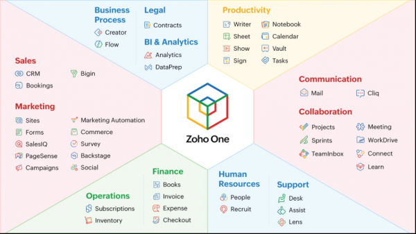 Năm 2017, Zoho One ra mắt thị trường, đánh dấu lần đầu tiên có một nền tảng phần mềm bao gồm 35 ứng dụng tích hợp với nhau một cách nhịp nhàng. Ngày nay, Zoho One đã trở thành Hệ điều hành dành cho Doanh nghiệp – một nền tảng đa nhiệm và dễ dàng mở rộng với hơn 45 ứng dụng hợp nhất, đi cùng các dịch vụ đầu-cuối như AI (trí tuệ nhân tạo), Business Intelligence (trí tuệ doanh nghiệp), giao tiếp dựa trên ngữ cảnh, tìm kiếm nâng cao, để có thể sát cánh với doanh nghiệp trên tất cả hoạt động – từ kinh doanh và marketing, đến tài chính, nhân sự, cho đến phân tích số liệu.
