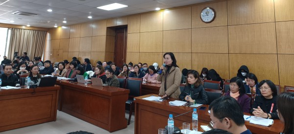 Bà Trần Thị Hải Yến, Hiệu trưởng Trường THPT Trần Phú (Hà Nội), phát biểu tại hội thảo