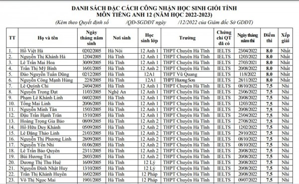 Danh sách đặc cách công nhận học sinh giỏi tỉnh của Hà Tĩnh gây tranh cãi |