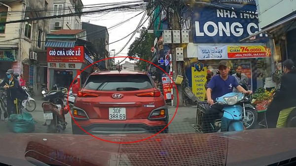 Theo hình ảnh được camera hành trình gắn trên một ô tô con lưu thông phía sau ghi lại, thời điểm nói trên, ô tô này di chuyển trên ngõ 22 đường Ngô Gia Tự. Khi đến khu vực chợ Diêm Gỗ, tài xế phát hiện phía trước có một ô tô khác màu đỏ hiệu Hyundai Kona, mang biển kiểm soát 30F-388.69 đang đi thì bất ngờ dừng lại giữa đường.