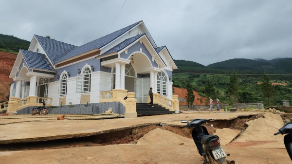 Sạt trượt đất ở dự án hồ chứa nước Đông Thanh làm nhiều ngôi nhà bị sụt lún, nứt nẻ