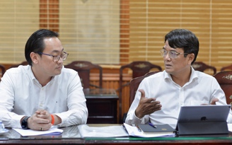 Ông Bùi Thanh Nhân (phải) và PGS-TS Phan Minh Hoàng (trái) trao đổi tại buổi làm việc, chiều 14.3