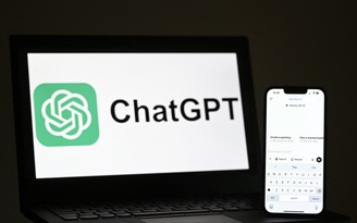 Logo ChatGPT trên máy tính và ứng dụng ChatGPT được mở trên điện thoại ẢNH: AFP