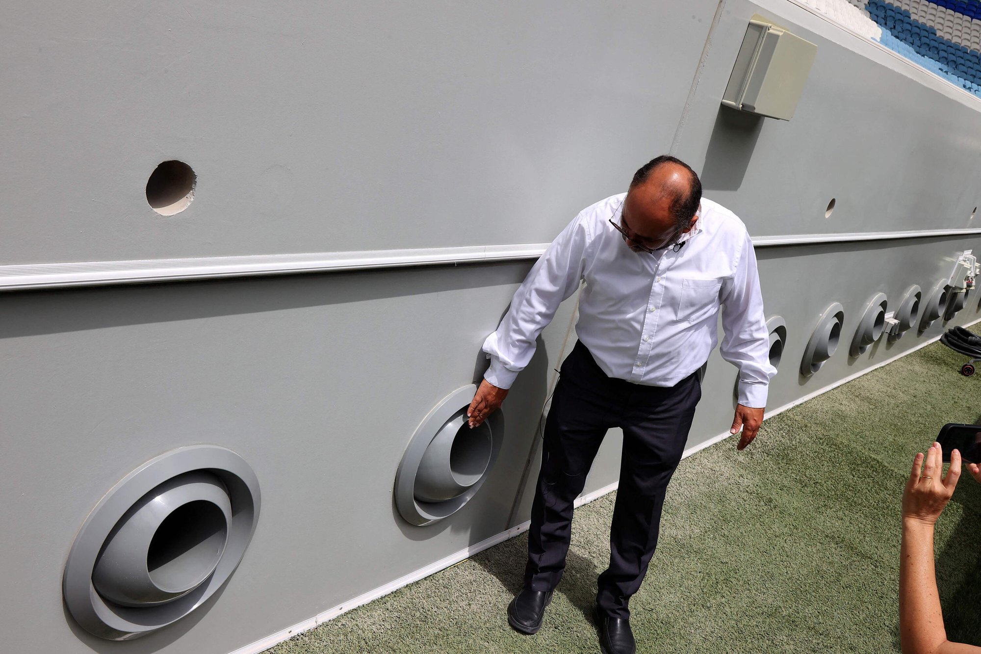 Thông qua kỹ thuật lưu thông không khí, không khí ấm sẽ được hút vào hệ thống làm mát của sân vận động. Sau đó, không khí này được làm sạch bằng nước và làm mát.