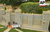 Với sự kỳ công và số lượng 4.100 viên gạch Lego, bên ngoài lâu đài là cảnh Hoàng tử và Công nương xứ Wales, William và Cathrine, cùng các con của họ đang chuyển đồ từ trên xe xuống.