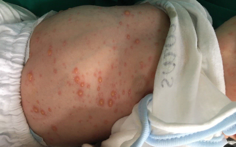 Đây là trường hợp bệnh thủy đậu gây biến chứng ở trẻ sơ sinh điển hình mà Trung tâm Bệnh nhiệt đới – Bệnh viện Nhi Trung ương vừa tiếp nhận.