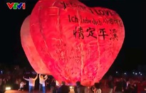 Lễ hội đèn trời Pingxi năm nay được tổ chức gần ngày Lễ tình nhân 14/2, do đó, hai chiếc đèn lồng khổng lồ hình trái tim và khoảng 100 chiếc đèn nhỏ hơn đã được thả lên trời.