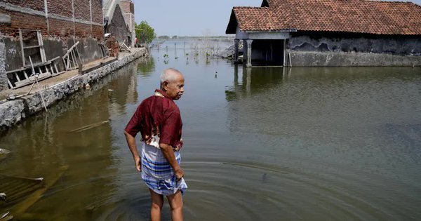 Ngập lụt tại Timbulsloko, Trung Java, Indonesia tháng 7/2022. Ảnh: AP.