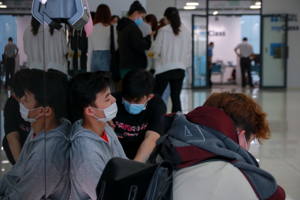 Một sinh viên chợp mắt nghỉ ngơi trong khi chờ kết quả làm việc với Hội đồng Anh